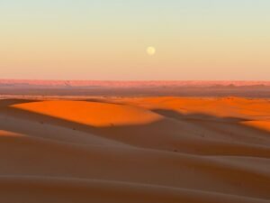 On our second Day , the journey begins in Midelt, heading toward the Erg Chebbi Dunes. The first stop is at the Ziz River Gorge, a dramatic valley carved by the Ziz River, surrounded by cliffs and lush palm groves. Next, you’ll pass through the Tafilalt Oasis, one of Morocco’s largest oases, where date palms and Berber villages offer a stark contrast to the desert landscape. Afterward, you’ll visit the Moulay Ali Sherif Zaouia in Rissani, a significant spiritual site. Rissani itself is a lively town with a traditional market. By afternoon, you’ll arrive at the Erg Chebbi Dunes.